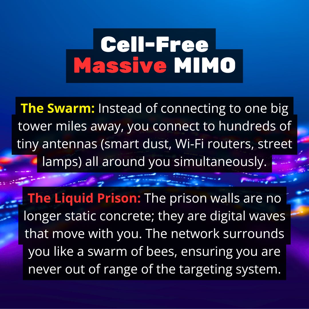 We explain how 6G plans to replace distant cell towers with thousands of “Access Points” (up to 1,000 per square kilometer) that work together to serve a single user. We break down the engineering terms—like Favorable Propagation and Channel State Information (CSI)—and explore the darker implications of a network that offers “no hiding place,” effectively creating a “biometric lock” around the user.