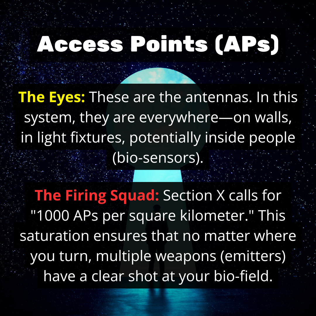 Section X describes the end of privacy and the end of sanctuary. By moving from “Cells” (fixed areas) to “Cell-Free” (user-centric), the technocrats are building a control grid that flows like water, filling every crack and crevice to ensure that no human being is ever disconnected from the Hive Mind.