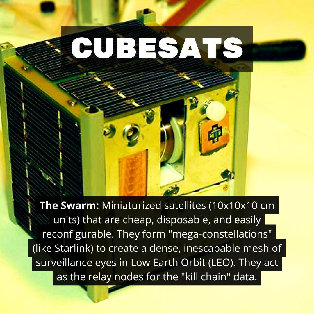 Section IX of the 6G Whitepaper (”Internet of Space Things with CubeSats and UAVs”) details the construction of the Orbital Kill Grid. While previous sections established the cage around the human subject (WBAN, Smart Cities), Section IX constructs the roof, sealing the digital prison from above. This architecture ensures “wireless ubiquity,” a euphemism for the total elimination of sanctuary. There is nowhere to hide—not in the desert, not at the poles, not in the ocean. The Internet of Space Things (IoST) integrates terrestrial, aerial (UAV), and space (CubeSat) assets into a single, unified surveillance and targeting matrix.