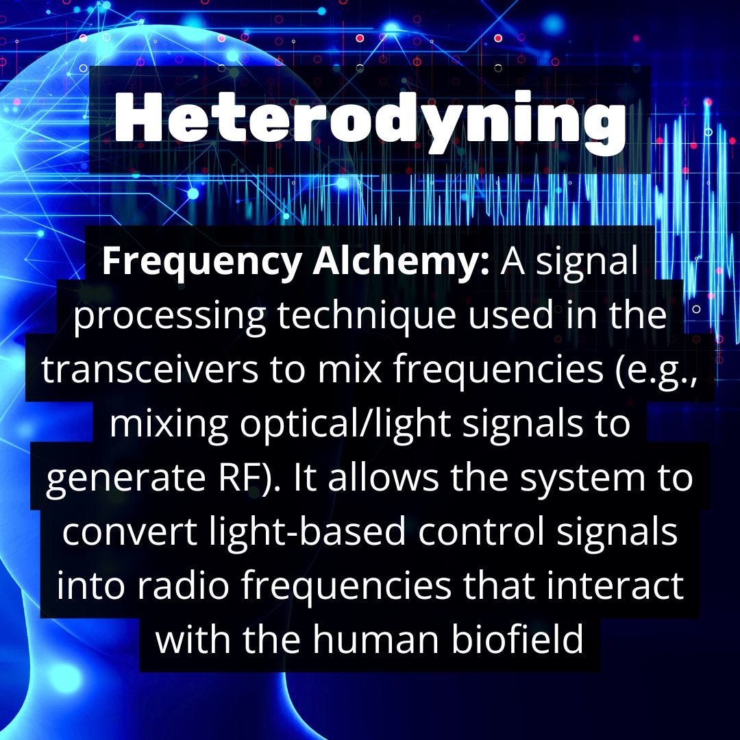 The Truth: This validates the use of Optogenetics and Photonics in the control grid. The system can take optical signals (light) and down-convert them into RF/Terahertz signals that interact with biological matter. This bridges the gap between the “Internet of Bio-NanoThings” (inside you) and the “Internet of Space Things” (above you), allowing light and RF to be interchanged to manipulate the target.
