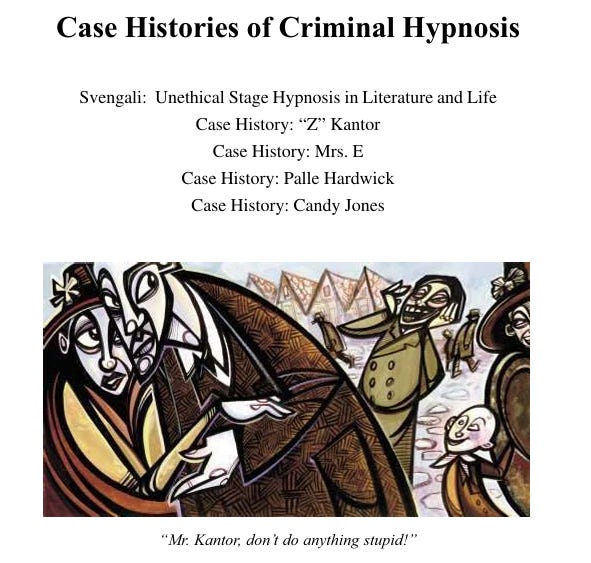 George Du Maurier (Trilby, 1894): His novel, featuring Svengali's total control over Trilby, became a literary touchstone for hypnotic manipulation. While the book states subjects can't be "totally metamorphosed by hypnotic suggestions from talentless to skilled," it concedes that "any training is enhanced by adding a trance component". The story’s depiction of dominance, expertise, and betrayal resonated deeply with the realities of unethical hypnosis.
