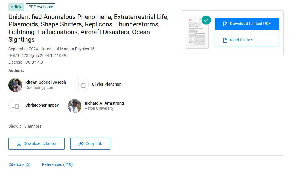 Although plasmas in the lower atmosphere may be responsible for UAP sightings over the centuries, including those that appear to “battle” over cities or follow and harass military ships and planes, plasmoids cannot account for all UAP which may include extraterrestrial spacecraft from other worlds.