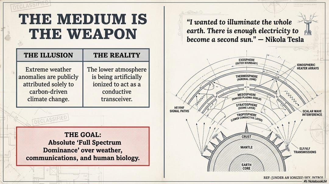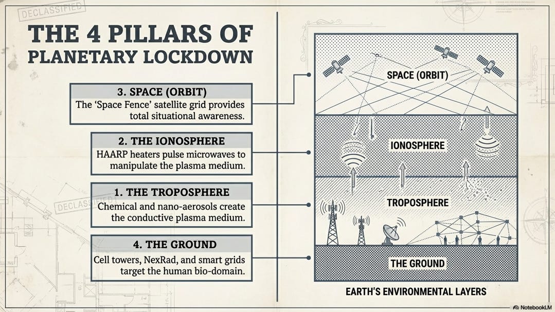 Are we living inside an ionized terrarium? This deep dive explores the technical reality of full-spectrum dominance and the weaponization of our atmosphere. Based on the work of Elena Freeland, we deconstruct the nexus between chemical aerosol spraying (Project Cloverleaf) and ionospheric heaters like HAARP.