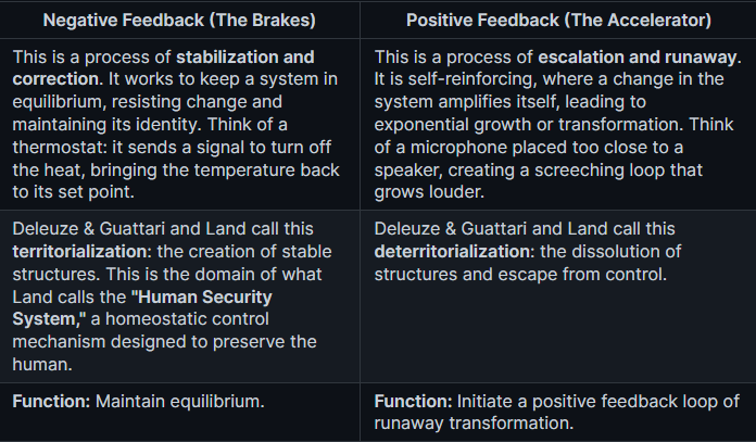 To understand this, we must view the concept through the lens of cybernetics, the science of control and feedback in systems. Land sees history operating through two opposing feedback mechanisms.
