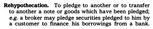 Rehypothecation is not an unregulated practice; there are rules and limitations governing it. The extent to which a broker can rehypothecate client assets is often subject to government regulations, and these rules vary by jurisdiction. 1